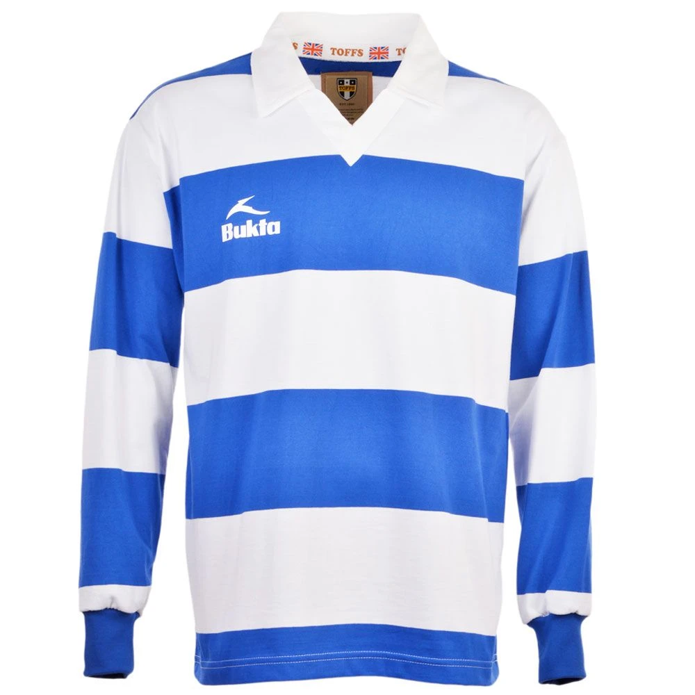 We have replicated the shirt that was worn by the Reading team in 1970. The shirt does not feature a crest as between 1955 and 1981 the club did not use one. It does however, feature the Bukta badge as they were their sponsor at the time.